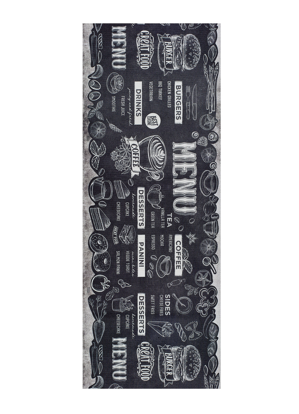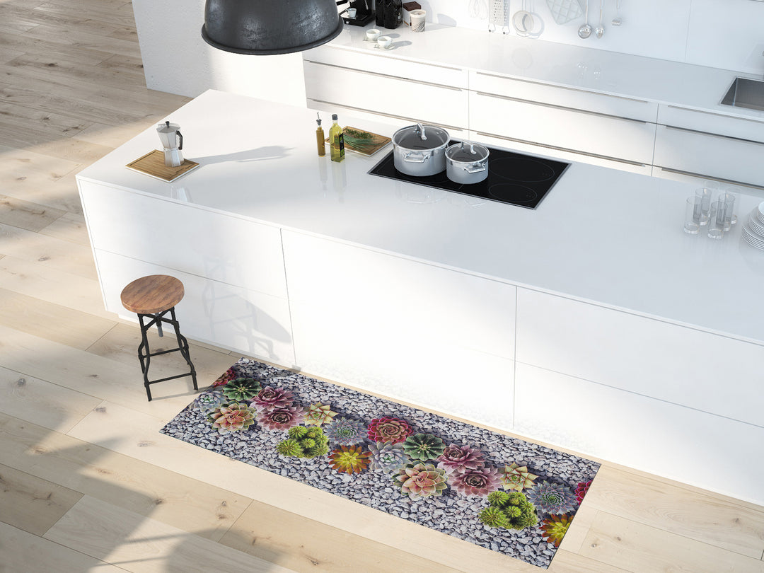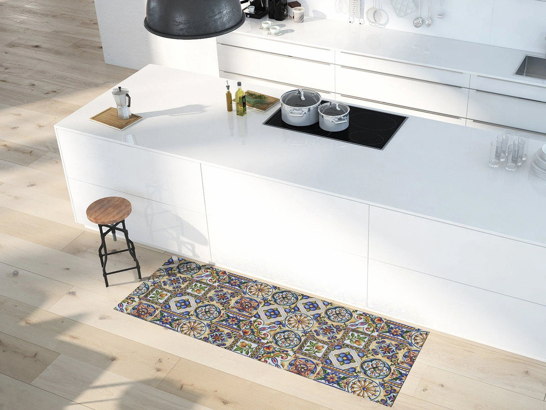As passadeiras decorativas com padrão distinguem-se pela diversidade de desenhos, grafismos e combinações cromáticas, oferecendo soluções visuais que transformam a cozinha num espaço mais expressivo e personalizado. Desde imitações de cerâmica ou mosaico, a padrões geométricos, motivos inspirados na temática de cozinha ou propostas abstratas contemporâneas, esta coleção reúne uma ampla variedade de estilos adaptáveis a diferentes ambientes.