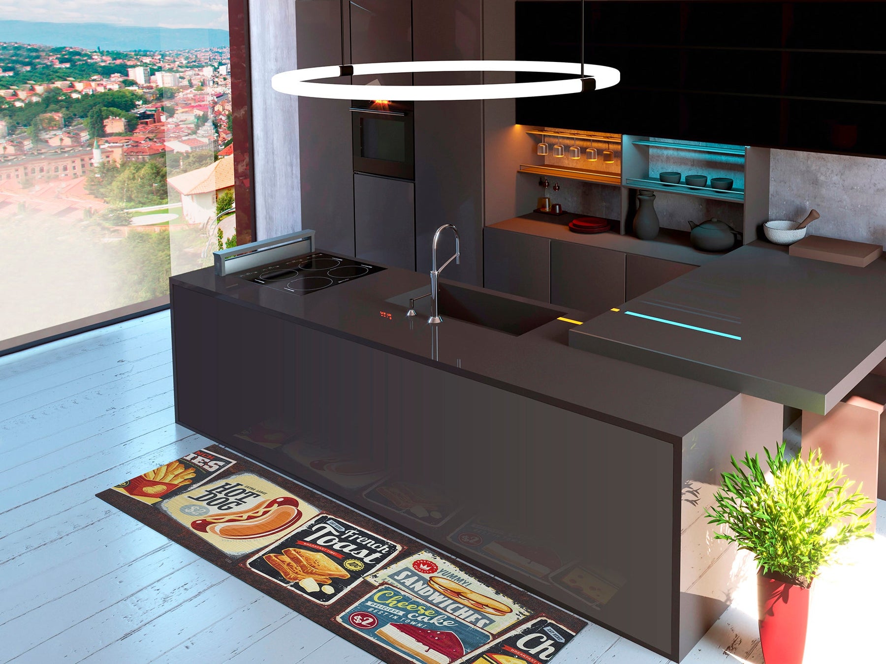 A Passadeira Sprinty 100% poliéster, com base antiderrapante em PVC, ultrafina (aprox. 3 mm), leve, higiénica, antialérgica e de manutenção simples. Solução funcional para uso diário, fácil de limpar e adequada a cozinhas e zonas de passagem.