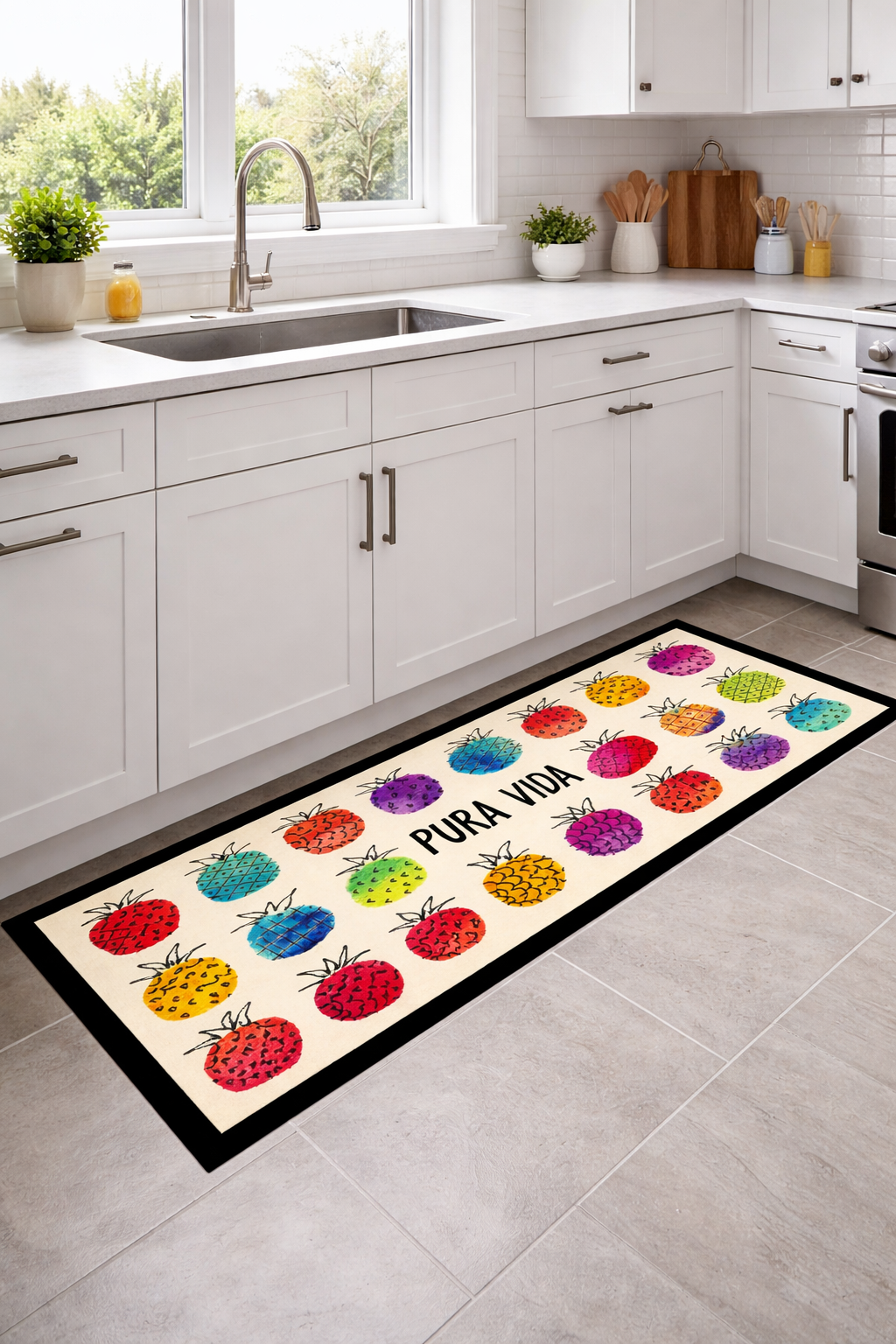 A Passadeira Taba destaca-se pelo seu acabamento de aspeto têxtil e pela espessura ligeiramente superior, que proporciona maior conforto ao caminhar. A poliamida confere boa resistência ao desgaste e um aspeto cuidado, tornando-a adequada para zonas de utilização frequente. A base antiderrapante assegura estabilidade, enquanto a variedade de padrões — desde inspirações ligadas à cozinha até propostas geométricas — permite integrar facilmente a passadeira em diferentes ambientes.