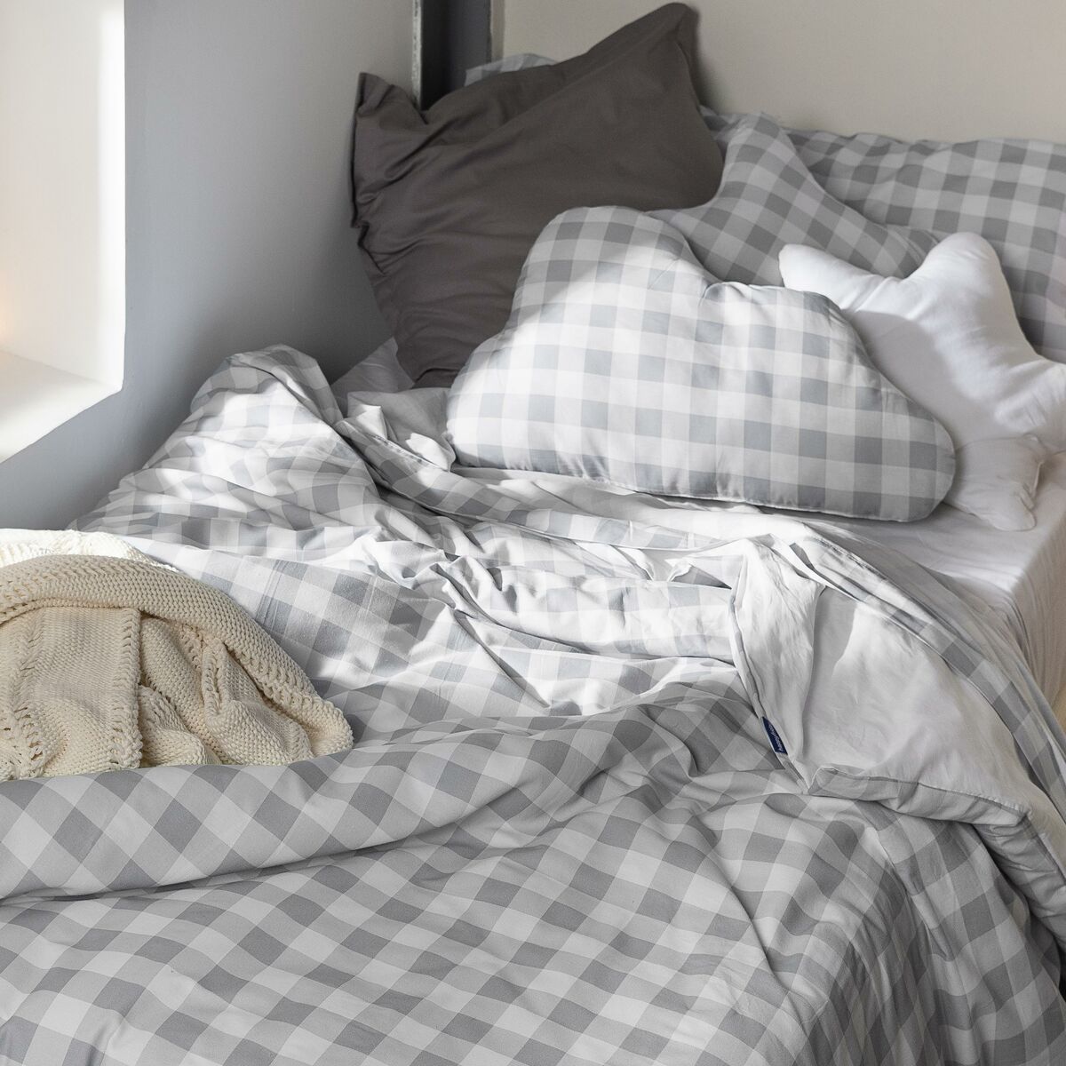 Conjunto de capa de edredom HappyFriday Basic Kids Cinzento Solteiro Vichy 2 Peças