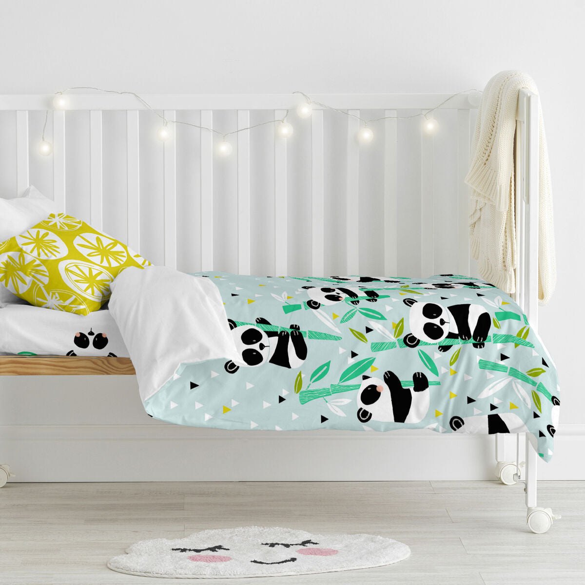 Juego de funda nórdica HappyFriday Moshi Moshi Panda Garden Blue Azul Cuna de Bebé 2 Piezas