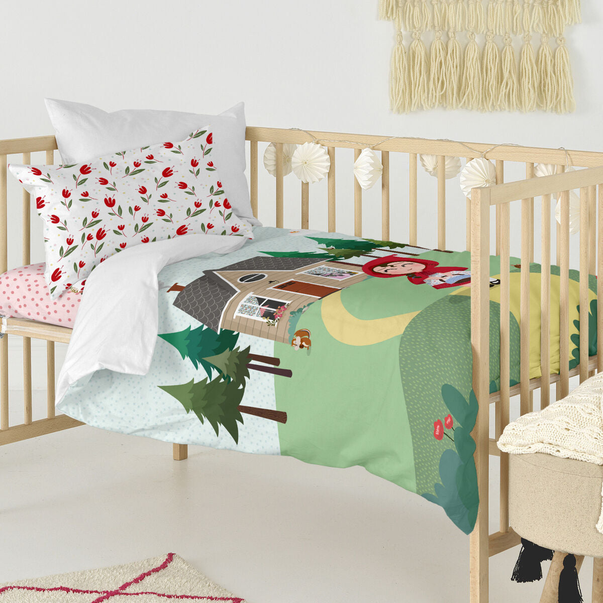 Juego de funda nórdica HappyFriday Mr Fox Red riding hood Multicolor Cuna de Bebé 2 Piezas