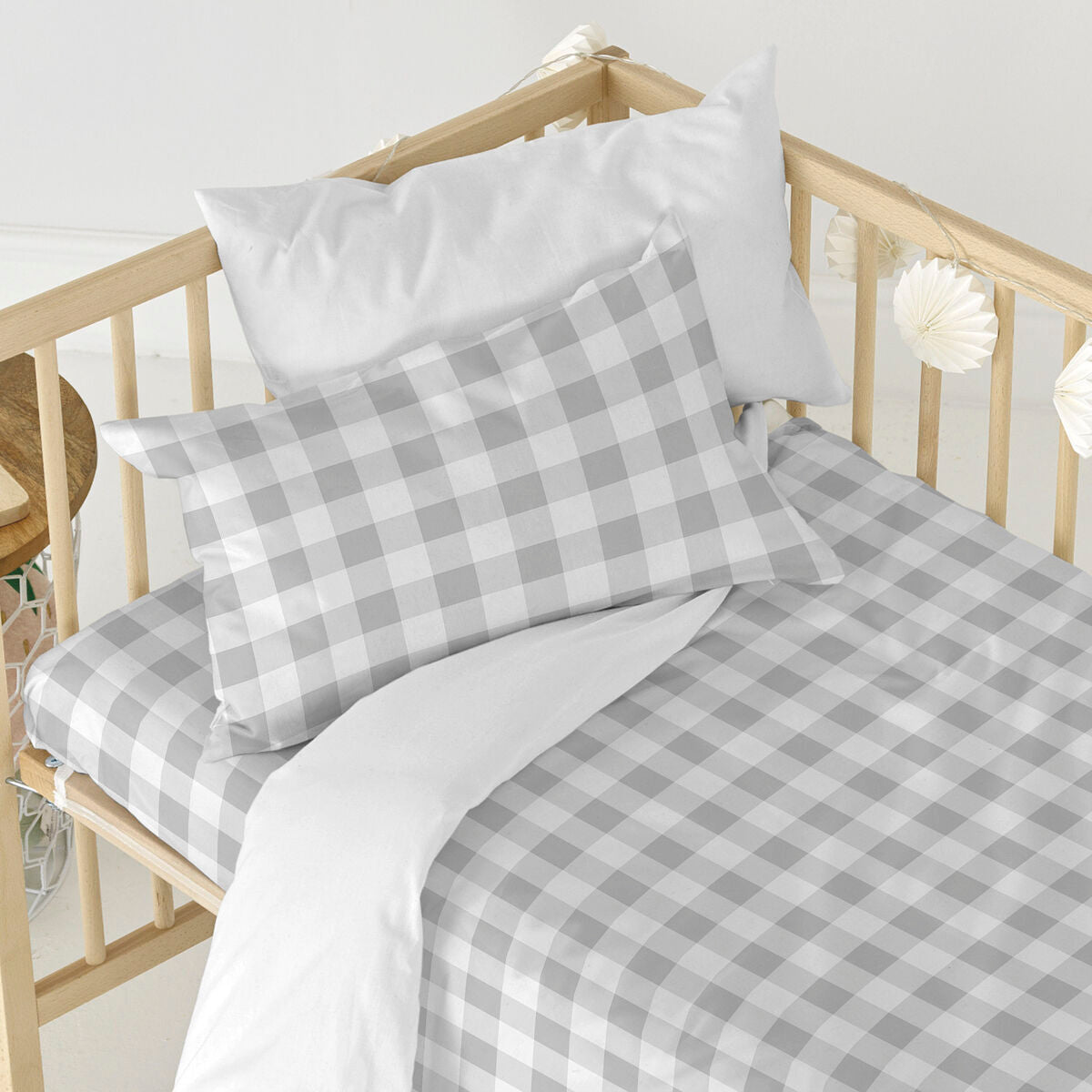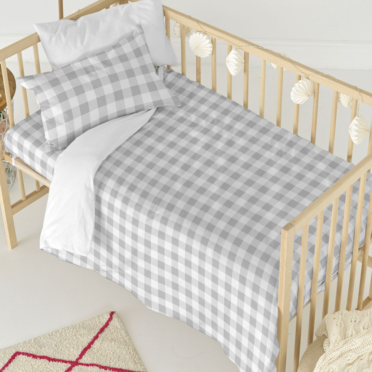 Conjunto de capa de edredom HappyFriday Basic Kids Cinzento Berço de Bebé Vichy 2 Peças